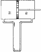 12.(15分)活塞把密闭气缸分成左、右两个气室,每室各与U形管压强计的一臂相连,压强计的两臂截面处处相同. U形管内盛有密度为ρ=7.5×102kg/m3的液体, 开始时左、右两气室的体积都为V0=1.2×10-2m3,气压都为P0=4.0×103Pa,且液体的液面处在同一高度,如图所示. 现缓缓向左推进活塞,直到液体在U形管中的高度差h=40cm,求此时左、右气室的体积V1、V2,假定两气室的温度保持不变,计算时