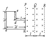 如图所示,在PQ、QR区域中存在着磁感应强度大小相等、方向相反的匀强磁场,磁场方向均垂直于纸面。一导线框abcdef位于纸面内,各邻边都相互垂直,bc边与磁场的边界P重合。导线框与磁场区域的尺寸如图所示。从t=0时刻开始,线框匀速横穿两个磁场区域。以a→b→c→d→e→f为线框中的电动势ε的正方向,以下四个ε-t关系示意图中正确的是 ( )