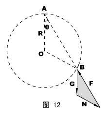 分析小球受力→矢量平移,如图12所示,其中F表示弹簧弹力,N表示大环的支持力。![]()