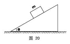 应用:如图20所示,一上表面粗糙的斜面体上放在光滑的水平地面上,斜面的倾角为θ。另一质量为m的滑块恰好能沿斜面匀速下滑。若用一推力F作用在滑块上,使之能沿斜面匀速上滑,且要求斜面体静止不动,就必须施加一个大小为P = 4mgsinθcosθ的水平推力作用于斜面体。使满足题意的这个F的大小和方向。![]()