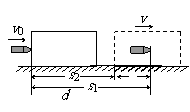 从能量的角度看,该过程系统损失的动能全部转化为系统的内能。设平均阻力大小为f,设子弹、木块的位移大小分别为s1、s2,如图所示,显然有s1-s2=d