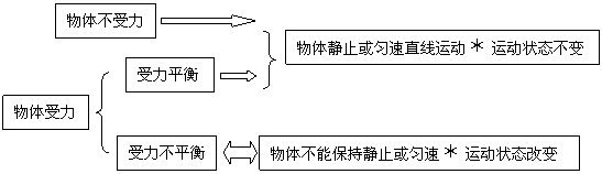 牛顿第一定律扩展:我们现在已经知道物体不受力与受力平衡是等效的(可以由牛顿第二定律得到受力平衡时加速为0,物体静止或匀速),所以牛顿第一定律可以这样理解:当物体不受力或受力平衡时,物体将保持静止状态或匀速直线运动状态。反过来亦成立,当物体处于静止状态或匀速直线运动状态时,物体必定不受力或受力平衡。有下图: