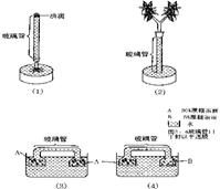 请判断实验开始后,玻璃管内的水是否流动及流动方向(无流动以×表示,流动方向以↓、↑、→、←表示)。下面4个选项中的符号依次表示4个装置中用括号标示的玻璃管内的水分流动现象,其中正确的是 A.↑↓×× B.×↑×→