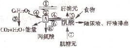 (5)长跑后感到肌肉酸痛,血液PH有所下降,这是因为发生了图中的 过程;之后酸痛消失,血液PH逐渐恢复正常,这主要是因为发生了 过程,此外,还与血液中存在的某些缓冲对有关。