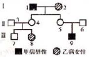 34.(6分)某家庭中有的成员患甲种遗传病(设显性基因为B,隐性基因为b),有的成员患乙种遗传病(设显性基因为C,隐性基因为c),见右面的系谱图。现已查明