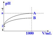 pH=2的A、B两种酸溶液各1mL,分别加水稀释到1000mL,其pH与溶液体积V的关系如图所示。下列说法正确的是: