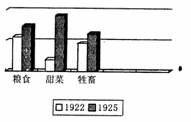 右图为1922年与1925年苏联主要农产品产量的对比图,