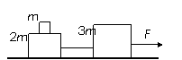 17.如图所示,光滑水平面上放置质量分别为m、2m和3m的三个木块,其中质量为2m和3m的木块间用一不可伸长的轻绳相连,轻绳能承受的最大拉力为T。现用水平拉力F拉其中一个质量为3m的木块,使三个木块以同一加速度运动,则以下说法正确的是 ( )