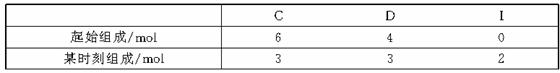 物质A跟B反应生成物质E、F和G;物质C跟D反应生成物质I,某温度下该反应起始和某时刻的反应混合物组成如上表格所示。请填写下列空白: