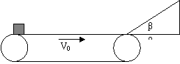 18.如图所示,已水平传送带以2m/s的速度传送物块,水平部分长为2m,其右端与一倾角为β=370的光滑斜面相连,斜面长为0.4m,一物块无初速度地放在传送带的最左端,已知物块与传送带间的动摩擦因数为