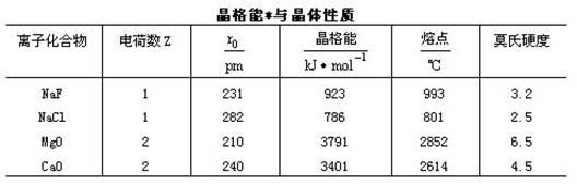 规律:阳离子(阴离子)相同时,阴离子(阳离子)半径越大,晶格能越小。