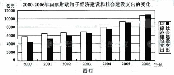 (1) 请你告诉他们图中反映了什么经济现象,并结合社会建设支出的具体内容。说明这些支出是如何对经济建设起到促进作用的。(11分)