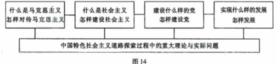 中国共产党把坚持马克思主义基本原理同推进马克思主义中国化结合起来,开辟了中国特色社会主义道路。中国特色社会主义道路的探索过程,是我们党在实践基础上不断深化对共产党执政规律、社会主义建设规律和人类社会发展规律认识的过程,是创造性地探索和回答一系列重大理论与实际问题的过程(如图14),是中国特色社会主义理论体系的形成过程。