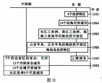 (3)读图16,概述中国对外开放空间扩展的过程。(8分)