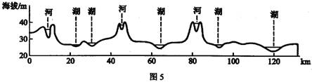 图5示意我国某地形区典型地段的地形剖面。读图5,完成16-18题。