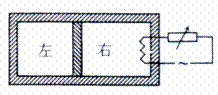 16.(09年全国卷Ⅱ) 如图,水平放置的密封气缸内的气体被一竖直隔板分隔为左右两部分,隔板可在气缸内无摩擦滑动,右侧气体内有一电热丝。气缸壁和隔板均绝热。初始时隔板静止,左右两边气体温度相等。现给电热丝提供一微弱电流,通电一段时间后切断电源。当缸内气体再次达到平衡时,与初始状态相比