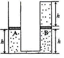 容器内两个绝热的活塞A、B下方封有氮气,B上方封有氢气。大气的压强p0,温度为T0=273K,连个活塞因自身重量对下方气体产生的附加压强均为0.1 p0。系统平衡时,各气体柱的高度如图所示。现将系统的底部浸入恒温热水槽中,再次平衡时A上升了一定的高度。用外力将A缓慢推回第一次平衡时的位置并固定,第三次达到平衡后,氢气柱高度为