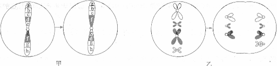16.(09江苏卷)在细胞分裂过程中出现了甲、乙2种变异,甲图中英文字母表示染色体片段。下列有关叙述正确的是