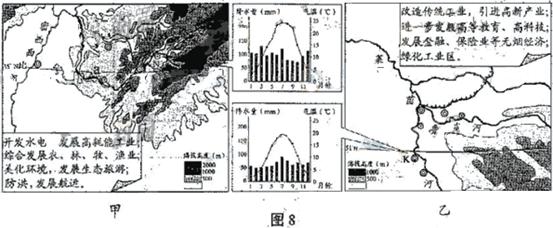 13.(26分)读区域图(图8)和图中文字信息,回答问题。