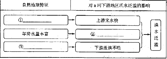 (2)据图中信息,探究甲区域a河下游地区过去经常洪水泛滥的自然原因,填写表格内容。(9分)
