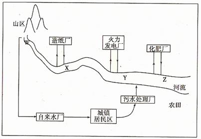 (1)某城镇生产、生活的分布情况如图所示,河流中W、X、Y、Z处某次水样抽测结果如表所示。