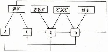 ①随着铁矿的开发和炼铁厂的建立,需要在该地区相应建立焦化厂、发电厂、水泥厂等,形成规模的工业体系。据此确定上图中相应工厂的名称A 、B 、C 、D ;