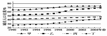 C.城市人口比重较低 D.城市人口比重增长率较低