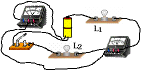 11. 如图,电路中除了有一根导线是断的,其余器材均完好,灯L1电阻为10Ω,灯L2电阻为5Ω,电源由两节新的蓄电池组成(4V),为查出断的导线,小刚采用下列方法:将电表的正接线柱与电源的正极a相连,再将电表的负接线柱分别与L1的b接线柱和L2的c接线柱相连.