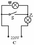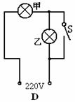 4. .如图,家庭照明灯的一种按键开关上常有一个指示灯。在实际使用中发现:当开关闭合时,只有照明灯发光;开关断开时,照明灯熄灭,指示灯会发出微弱的光,以便夜间显示开关的位置。根据这种控制特性,能正确表示照明灯(甲)和指示灯(乙)连接的电路图是( )