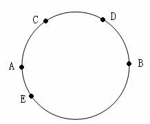 大圆为晨昏圈,图示部分为昼半球,五点坐标分别为A(0°,0°)、B(0°,180°)、C(41°N,22.5°E)、D(41°N,157.5°E)、E(15°W),读图回答1-3题。