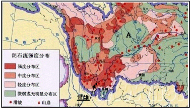 10.A地区泥石流强度微弱或无明显分布,其原因是