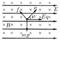 [解析]由于带电粒子所受洛伦兹力与v垂直,电场力方向与电场线平行,知粒子必须还受重力才能做匀速直线运动。假设粒子带负电受电场力水平向左,则它受洛伦兹力f就应斜向右下与v垂直,这样粒子不能做匀速直线运动,所以粒子应带正电,画出受力分析图根据合外力为零可得
