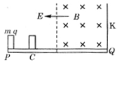 .如图所示,PQ为一块长为l、水平放置的绝缘平板,整个空间存在着水平向左的匀强电场,板的右半部分还存在着垂直于纸面向里的有界匀强磁场。一质量为m、带电荷量为q的物体,从板左端P由静止开始做匀加速运动,进入磁场后恰做匀速运动,碰到右端带控制开关K的挡板后被弹回,且电场立即被撤消,物体在磁场中仍做匀速运动,离开磁场后又做匀减速运动,最后停在C点,已知PC=