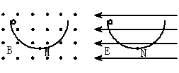 和匀强电场中,轨道两端在同一高度上。两个相同的带正电小球(可视为质点的)同时分别从轨道的左端最高点由静止释放,M、N分别为两轨道的最低点,则 ( )