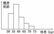 7.2010·银川模拟)某校对高三年级的学生进行体检,现将高三男生的体重(单位:kg)数据进行整理后分成五组,并绘制频率分布直方图(如图所示).根据一般标准,高三男生的体重超过65 kg属于偏胖,低于55 kg属于偏瘦.已知图中从左到右第一、第三、第四、第五小组的频率分别为0.25、0.20、0.10、0.05,第二小组的频数为400,则该校高三年级的男生总数和体重正常的频率分别为 ( )
