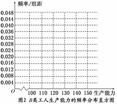 (2)从A类工人中的抽查结果和从B类工人中的抽查结果分别如下表1和表2.
