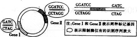 6.基因工程中,需使用特定的限制酶切割目的基因和质粒,便于重组和筛选。已知限制酶I的识别序列和切点是-G↓GATCC一,限制酶II的识别序列和切点是一↓GATC一。根据图示,判断下列操作正确的是: