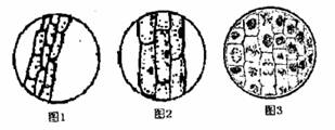 3.若图1、图2、图3是某同学做有丝分裂实验时,在光学显微镜下观察到的图像,下列有关说法正确的是                          (   )