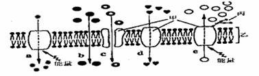 4.下图为物质跨膜运输示意图(甲、乙、丙代表物质,a、b、c、d、e代表运输方式)。下列叙述错误的是                         (   )