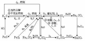 低价态的硫元素通过氧化剂的氧化反应,可以变为较高价态的硫元素,高价态的硫元素通过还原反应,可以转变为较低价态的硫元素。要能熟练写出H2S、S、SO2、H2SO4等含硫物质相互转化的化学方程式。