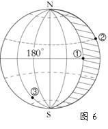 读图6(图中斜线区表示黑夜),做21-23题。