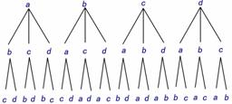 分析:解决这个问题分三个步骤:第一步先确定左边的字母,在4个字母中任取1个,有4种方法;第二步确定中间的字母,从余下的3个字母中取,有3种方法;第三步确定右边的字母,从余下的2个字母中取,有2种方法.
