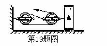 19.小明利用如图所示的装置沿水平方向将一个重2000N,底面积为0.5m2的物体A向左匀速拉动2 m,物体A受到的摩擦力为600N,作用在绳端的拉力为250N,则物体A对地面的压强是  Pa;拉力做的功为_________J;该装置的机械效率是