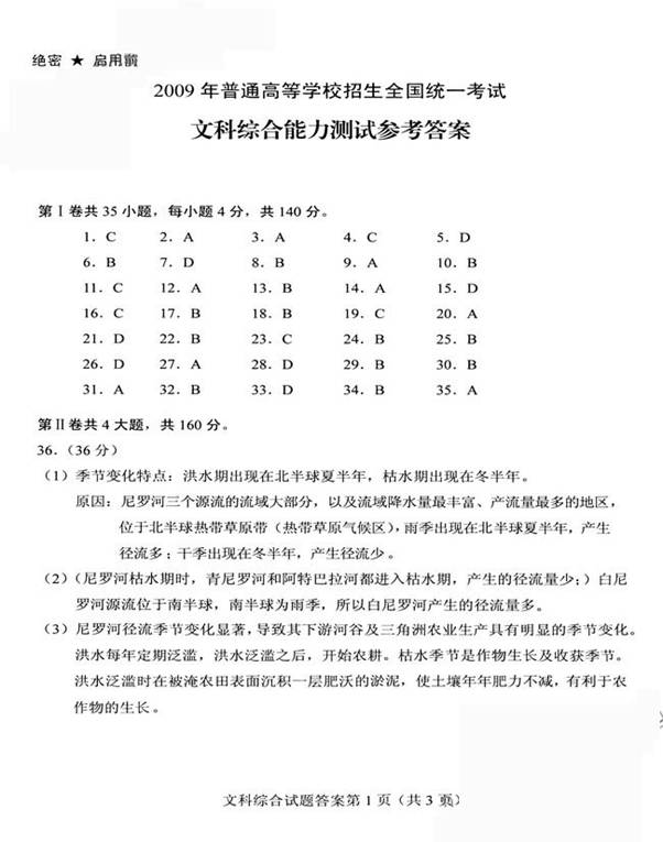 (3)简述尼罗河径流季节变化对其下游河谷及三角洲古代农业生产的影响。(14分)