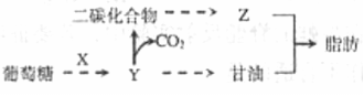 解析:脂肪是由甘油和脂肪酸合成的,在生物体内,合成甘油的原料主要来源于糖酵解途径,则X应为糖酵解、Y应为丙酮酸、Z应为脂肪酸。