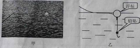 21、为了响应“健康重庆”的号召,小林和爸爸周末到郊外去钓鱼,他在亲近大自然的同时还观察到爸爸在钓鱼前要“试漂”来确定铅坠(铅坠由合金制成)的大小,尽量使“浮标”更灵敏(如图17甲所示),图17乙是浮标和铅坠的位置示意图。若球形浮标的体积为15cm3,铅坠的密谋为11g/cm3。(取水的密度ρ水=1.0×103kg/m3,g=10N/kg。)