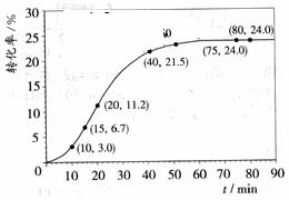 甲酸甲酯转化率在温度T1下随反应时间(t)的变化如下图: