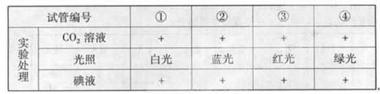 43.(广东理科基础)将在黑暗中放置一段时间的叶片均分4块,置于不同的试管中,按下表进行实验,着色最浅叶片所在的试管是