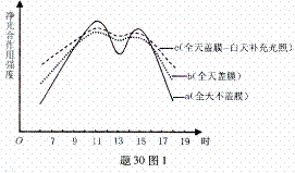 I在春末晴朗白天,重庆某蔬菜基地规定了某大棚蔬菜在不同条件下的净光合作用强度(实际光合作用强度与呼吸作用强度之差),结果见题30图l(假设塑料大栅外环境条件相同;植株大小一致、生长正常,栽培管理条件相同)