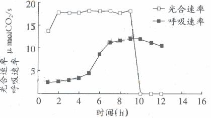 在充满N2与CO2的密闭容器中,用水培法栽培几株番茄,CO2充足。测得系统的呼吸速率和广合速率变化曲线如下图,请回答问题。